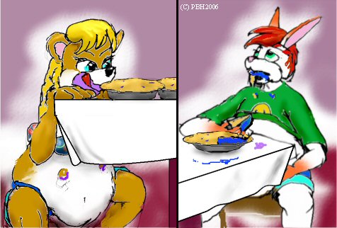Funny bunny. Come get your pie and be sure to lick the plate surp surp “Oh oh yes lick it up. lick my